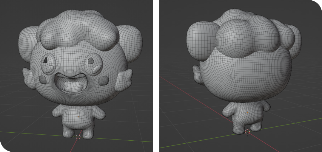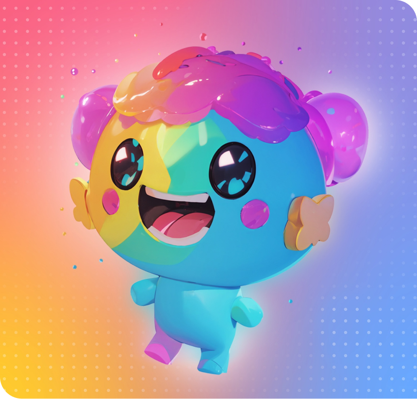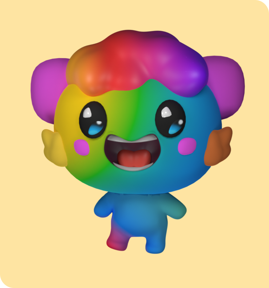 Этот персонаж — маскот Санкт-Петербургского конкурса «CMYK». Он делался по эскизу от нейросети и в конце итоговый рендер был обработан нейросетью по пожеланию заказчика