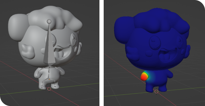 Поскольку модель нестандартная, скелет выполнялся вручную, а такаже вручную расставлялись веса